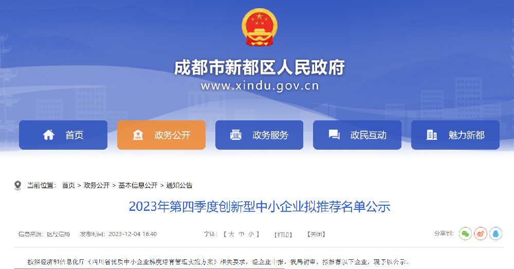 恭喜四川艾能捷科技有限公司入選2023年度四川省創(chuàng)新型中小企業(yè)公示名單! 近日,四川省經(jīng)濟和信息化廳發(fā)布了公示名單,四川艾能捷科技有限公司等一批優(yōu)秀的中小企業(yè)入選2023年度四川省創(chuàng)新型中小企業(yè)名單。這一榮譽對于四川艾能捷科技有限公司來說無疑是對其創(chuàng)新能力... -