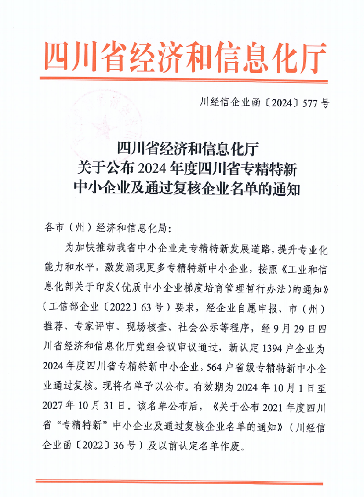 近日,四川省經(jīng)濟和信息化廳公布了2024年專精特新中小企業(yè)名單,四川艾能捷科技有限公司(Sichuan Energy Technology Co., Ltd.)憑借其卓越的技術(shù)實力和專業(yè)化發(fā)展優(yōu)勢,榮獲四川省“專精特新”中小企業(yè)稱號。這一成就體現(xiàn)了艾能捷(ENERGY)公司在技術(shù)創(chuàng)新和專業(yè)服務方面的卓越表現(xiàn),也符合“... -